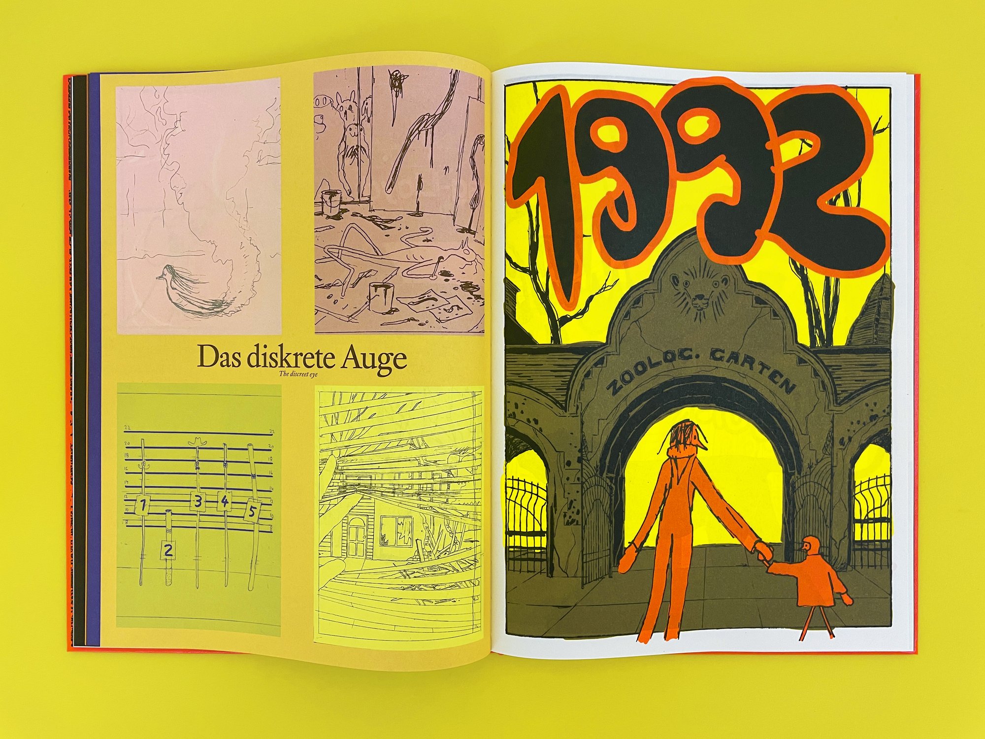 The catalogue for the exhibition Chez Schnabel at the Museum der Bildenden Künste Leipzig is being published in conjunction with the 2021 LVZ Art Prize award. This is the first publication by artist Anna Haifisch to give an insight into her approach to making comics. The catalogue brings together sketches, references, haikus, notes, and the new short story 1992—a making-of account composed of wobbly animals, the artist entity, and autobiographical material.